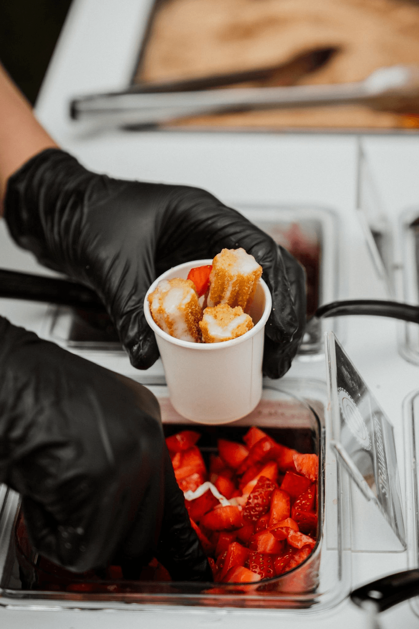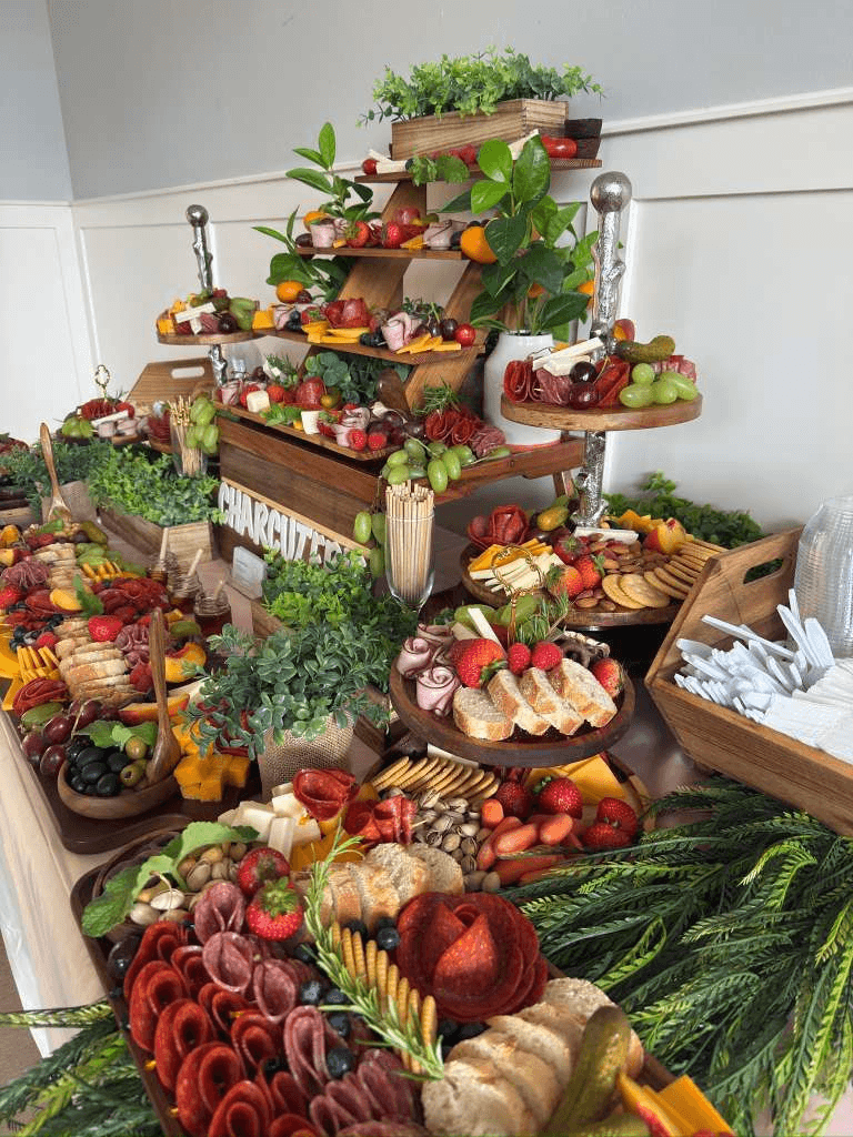 Indulge in our exquisite catering services that include delivery, sophisticated car setup , donut displays, and tasteful foliage decor tailored to your event's color palette.